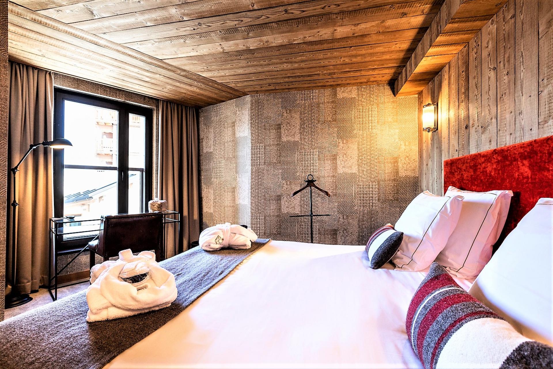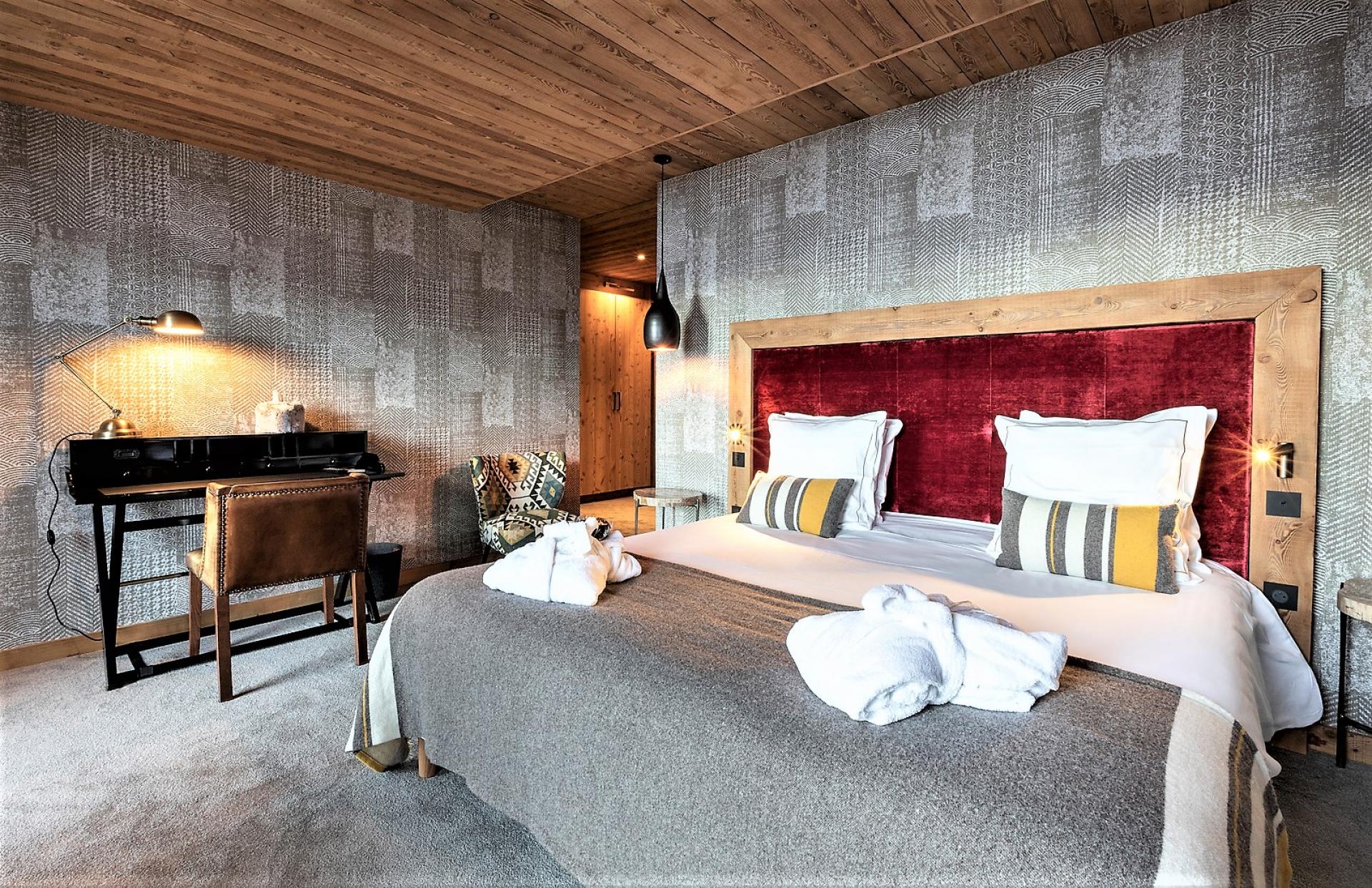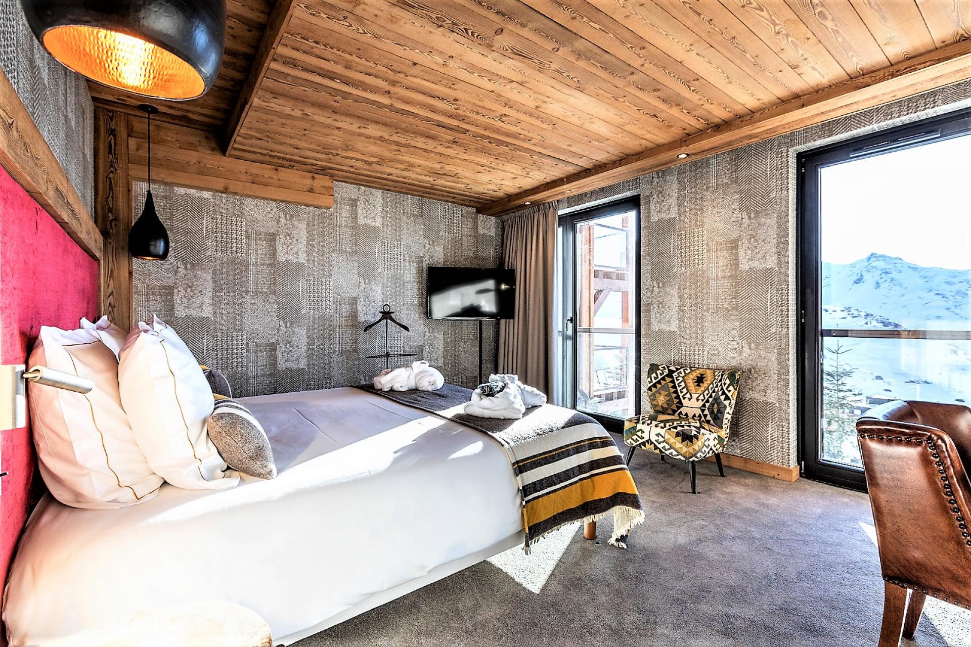 Bathed in natural light, the Nomade chalet will seduce you with its muted and opulent decor mixing natural colours and textures: volcanic black granite meets the softest wools and velvets, in earthy and bejewelled tones…. for an intimate and friendly atmosphere, centered around a masterful fireplace..