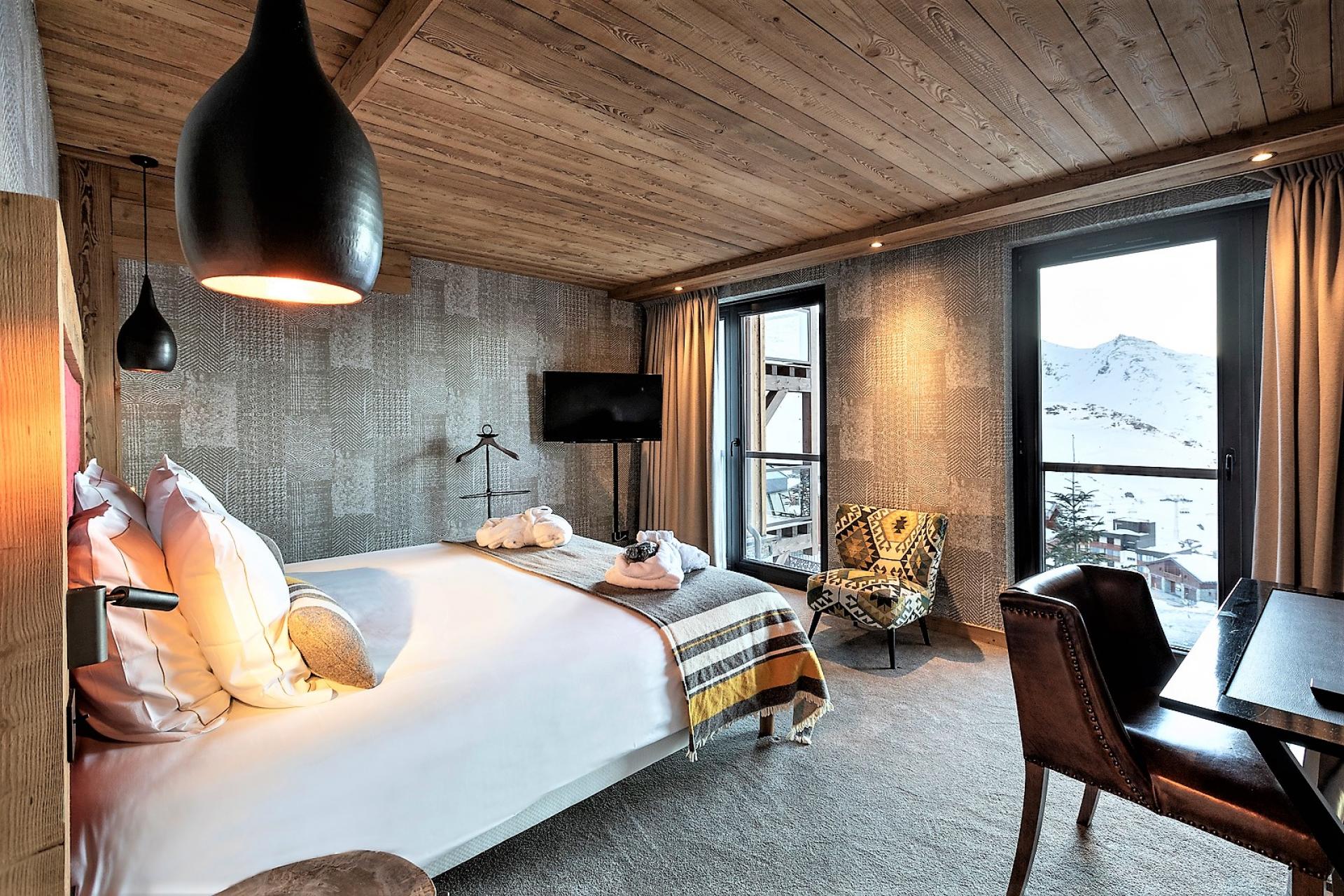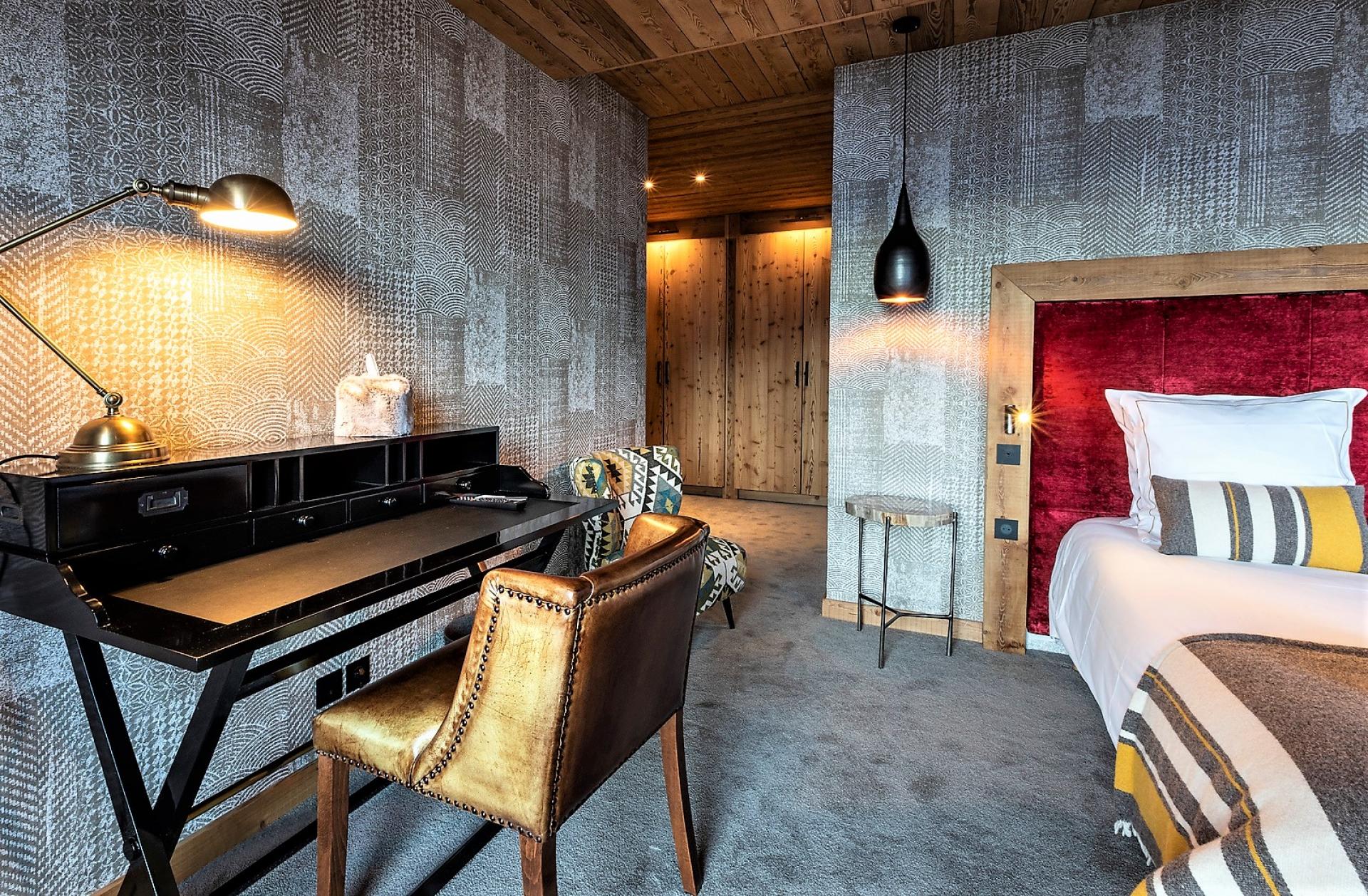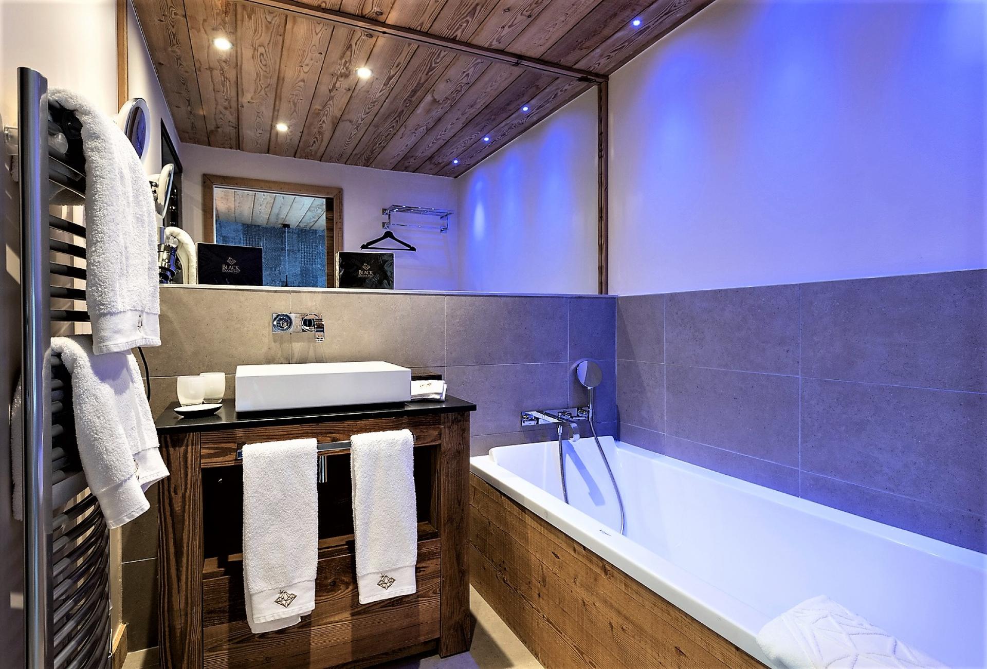 Bathed in natural light, the Nomade chalet will seduce you with its muted and opulent decor mixing natural colours and textures: volcanic black granite meets the softest wools and velvets, in earthy and bejewelled tones…. for an intimate and friendly atmosphere, centered around a masterful fireplace..
