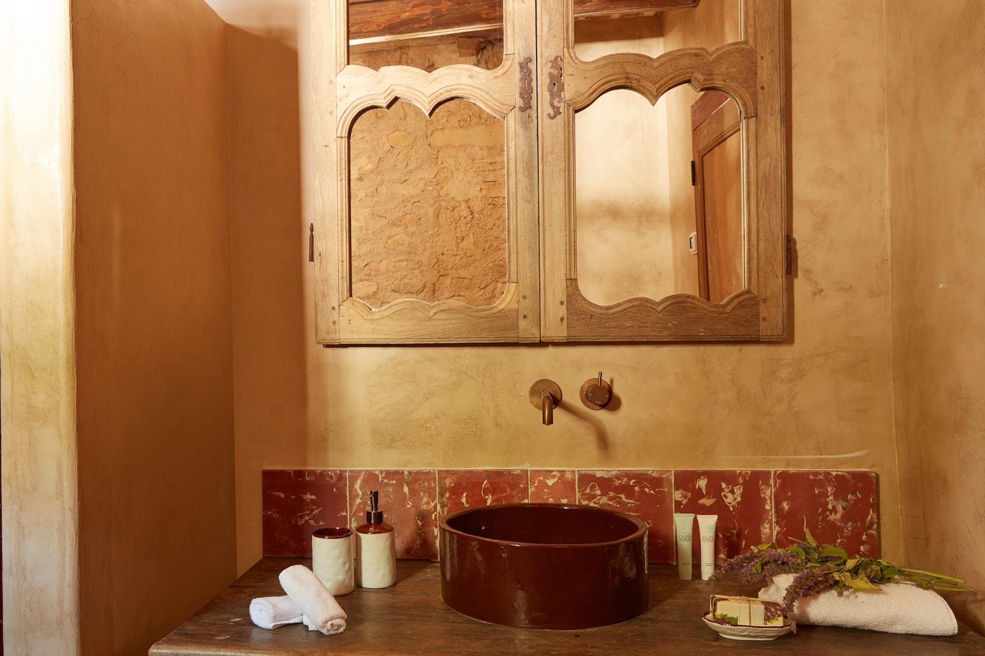 Nestled in a scrubland of more than 4 hectares, planted with vines, olive trees and truffle oaks, with a breathtaking view of the Luberon and the Saint-Hilaire Abbey, Mas Garriga consists of 6 bedrooms, each with his bathroom. A dining room with fireplace, an equipped kitchen, a large living room, a TV corner and a wine cellar.