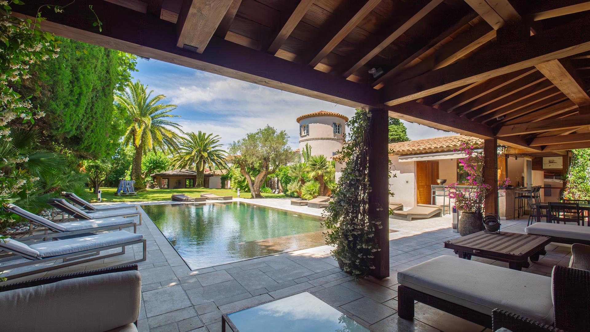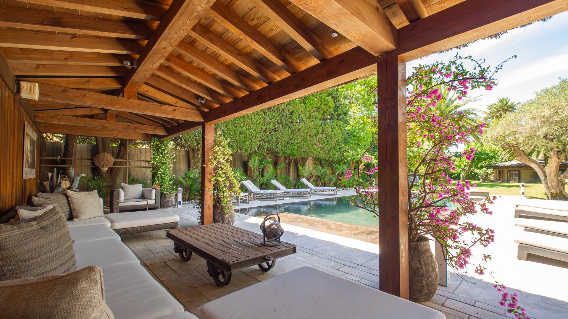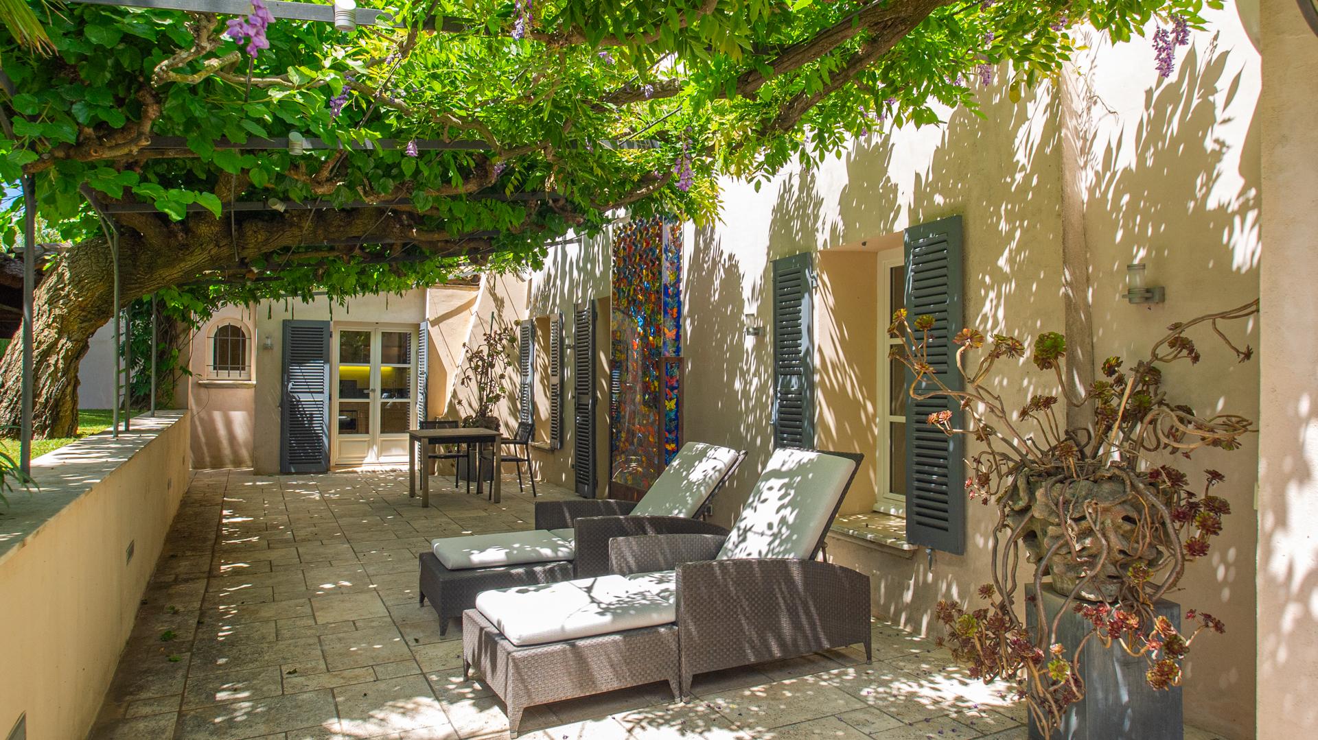 This unique property is located just 400 metres from les Place des Lices and just a 10- minute drive to the beaches at Pampelonne. The property is configured in such a way that it is hidden from view from the outside world and once inside the spacious well maintained and lush garden with its large heated pool, one enjoys a haven of peace and calm. Aside from the original, building which houses all the common parts and two en-suite bedrooms, there are two further buildings one housing two en-suite bedrooms and one closer to the pool, which houses another en-suite bedroom. The interiors have been furnished and decorated in a very stylish way with some interesting modern works of art. There is a lovely welcoming feeling throughout and some great features.
