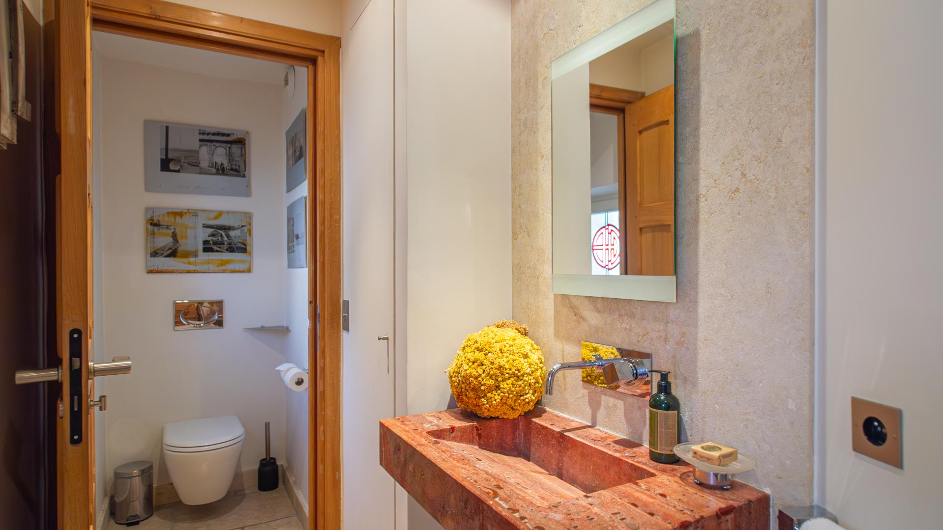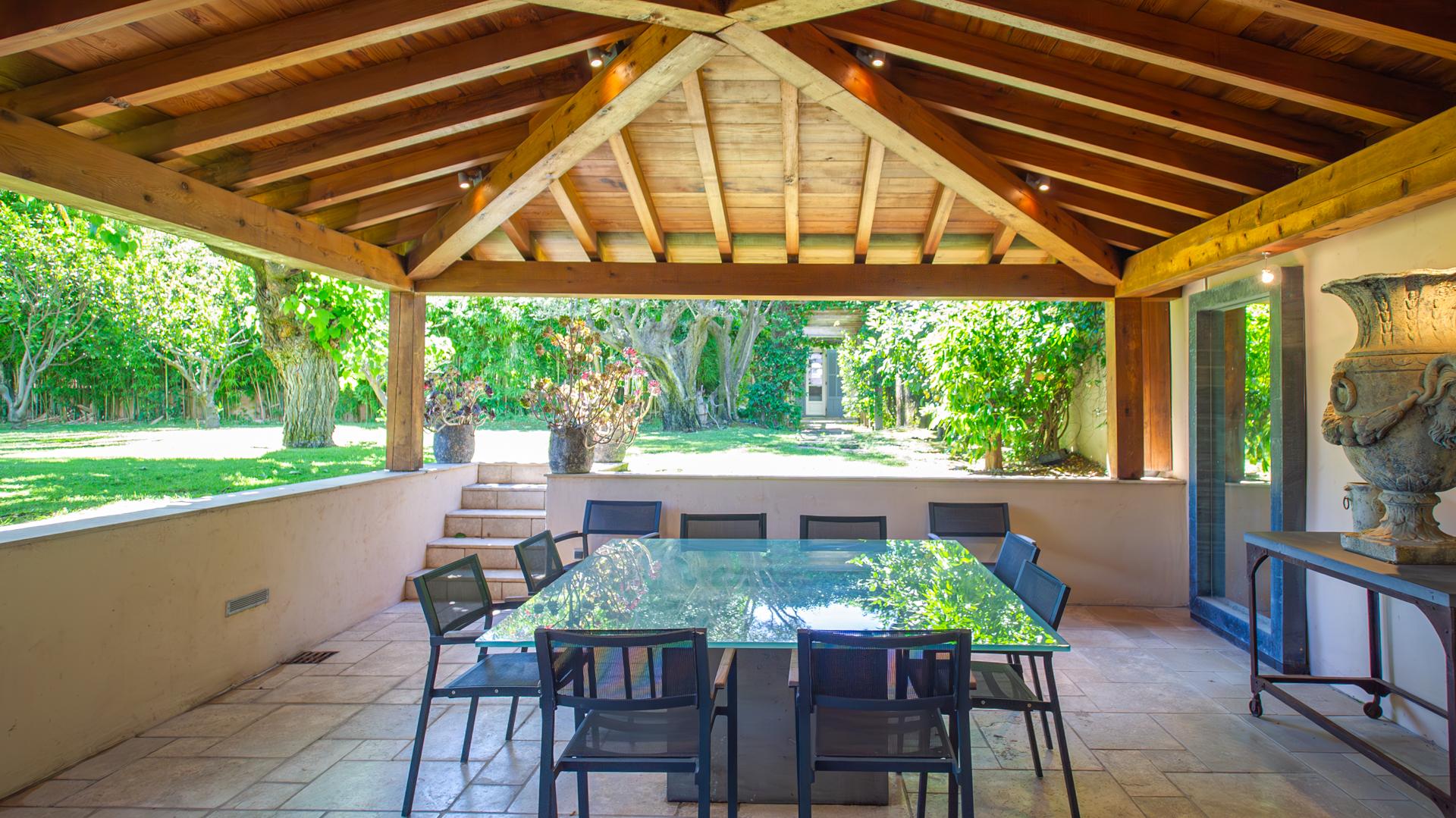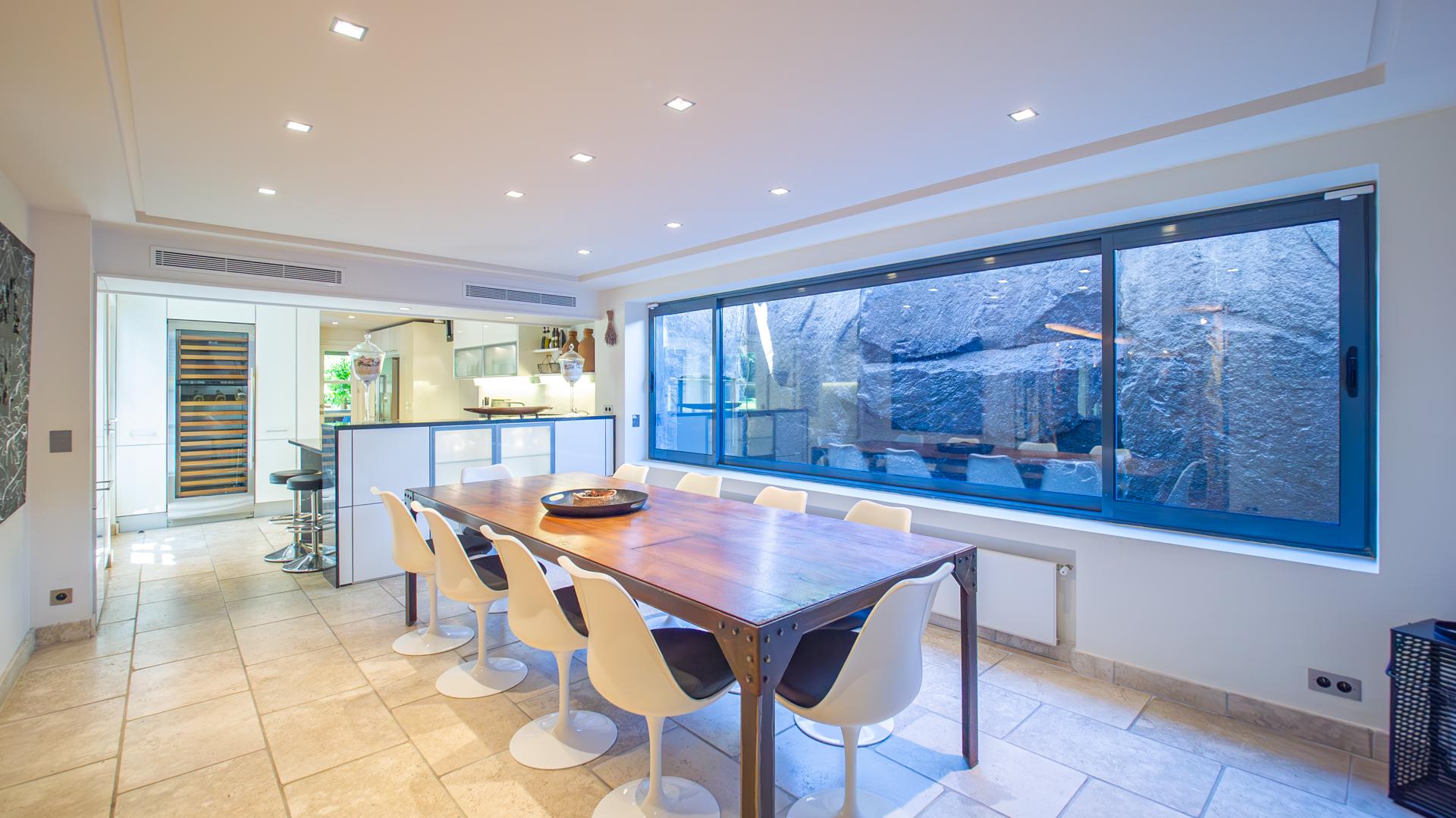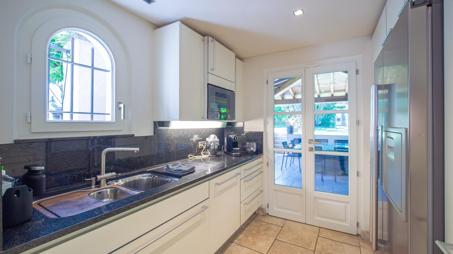 This unique property is located just 400 metres from les Place des Lices and just a 10- minute drive to the beaches at Pampelonne. The property is configured in such a way that it is hidden from view from the outside world and once inside the spacious well maintained and lush garden with its large heated pool, one enjoys a haven of peace and calm. Aside from the original, building which houses all the common parts and two en-suite bedrooms, there are two further buildings one housing two en-suite bedrooms and one closer to the pool, which houses another en-suite bedroom. The interiors have been furnished and decorated in a very stylish way with some interesting modern works of art. There is a lovely welcoming feeling throughout and some great features.